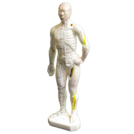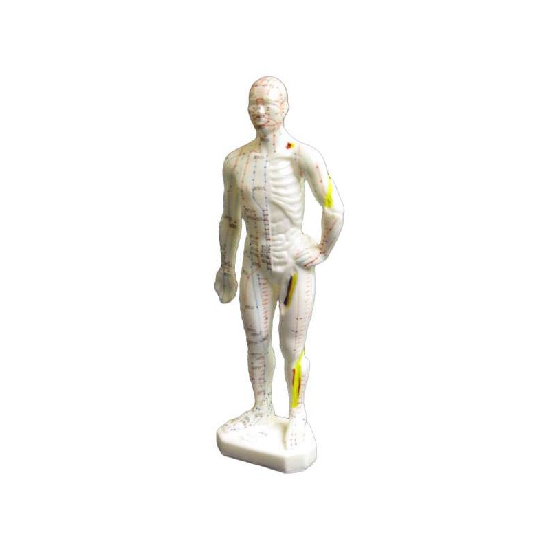 Diese männliche Akupunkturpuppe ist 26 cm groß. Die einzelnen Akupunkturpunkte und Meridiane sind mehrfarbig gekennzeichnet. Das Original-Referenzbuch in englischer und chinesischer Sprache liegt der Akupunkturpuppe bei.